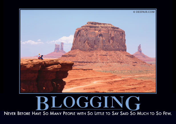 “Blogging – Never before have so many people with so little to say said so much to so few.” (www.despair.com/blogging.html)